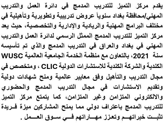 خطة مركز التميز للتدريب المدمج لسنة 2026